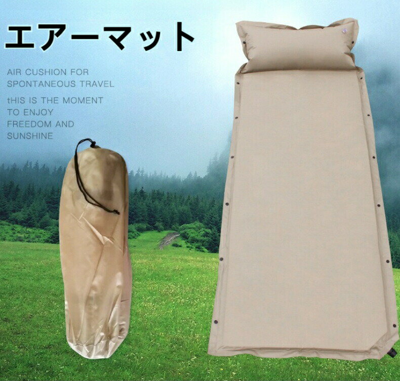 【製品仕様】品名:エアーマット重量:約1.6kg展開サイズ:192 × 66 × 5cm収納サイズ:67 × 15 × 15cm生地:75D / 210Tナイロン&PVC中身素材:高反発スポンジ【材質&仕上げ】エアーマットは撥水生地及び高反発スポンジで作られており、湿気が多いアウトドア環境でも安心してお使いいただけます。5cmの厚手構造は柔らかくて快適な寝心地を提供します。エアマットレスの両側に連結用のボタンが付いており、複数のマットレスを繋いでダブルベッドとしても使用可能です。【快適なデザイン】キャンプ用エアーマットは自動膨張設計なので、マットレスを展開しバルブを開けるだけで自動的に空気を吸い込みます。電動ポンプや空気入れが必要ありません。使わないときは折りたたんでコンパクトに収納できますので、場所を取らず、収納に困らない。更に専用の固定用バンドと収納袋がついており、車のトランクなどにおいて持ち運びが便利です。【幅広く活躍】エアマットはキャンプ、ピクニック、花見、花火大会、登山、車中泊など、様々なアウトドアキャンペンに最適です。または昼休み、地震、津波、台風など遭難時に非常用の防災グッズとしてもお使いいただけます。【安心保障】私たちは、お客様にご満足いただけますよう、出荷前に一つ一つ丁寧に検品しておりますが、万が一運輸途中の状況で初期不良品が届きましたら、お気軽にご連絡ください。速やかに対応させて頂きます。注意事項:空気漏れの原因となりますので、ご使用の際に小さい石、木の枝などの尖ったものにご注意ください。【製品仕様】品名:エアーマット重量:約1.6kg展開サイズ:192 × 66 × 5cm収納サイズ:67 × 15 × 15cm生地:75D / 210Tナイロン&PVC中身素材:高反発スポンジ【材質&仕上げ】エアーマットは撥水生地及び高反発スポンジで作られており、湿気が多いアウトドア環境でも安心してお使いいただけます。5cmの厚手構造は柔らかくて快適な寝心地を提供します。エアマットレスの両側に連結用のボタンが付いており、複数のマットレスを繋いでダブルベッドとしても使用可能です。【快適なデザイン】キャンプ用エアーマットは自動膨張設計なので、マットレスを展開しバルブを開けるだけで自動的に空気を吸い込みます。電動ポンプや空気入れが必要ありません。使わないときは折りたたんでコンパクトに収納できますので、場所を取らず、収納に困らない。更に専用の固定用バンドと収納袋がついており、車のトランクなどにおいて持ち運びが便利です。【幅広く活躍】エアマットはキャンプ、ピクニック、花見、花火大会、登山、車中泊など、様々なアウトドアキャンペンに最適です。または昼休み、地震、津波、台風など遭難時に非常用の防災グッズとしてもお使いいただけます。【安心保障】私たちは、お客様にご満足いただけますよう、出荷前に一つ一つ丁寧に検品しておりますが、万が一運輸途中の状況で初期不良品が届きましたら、お気軽にご連絡ください。速やかに対応させて頂きます。注意事項:空気漏れの原因となりますので、ご使用の際に小さい石、木の枝などの尖ったものにご注意ください。