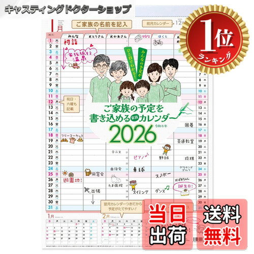 【送料無料】ご家族の予定を書き込める家族カレンダー 2026年 令和8年