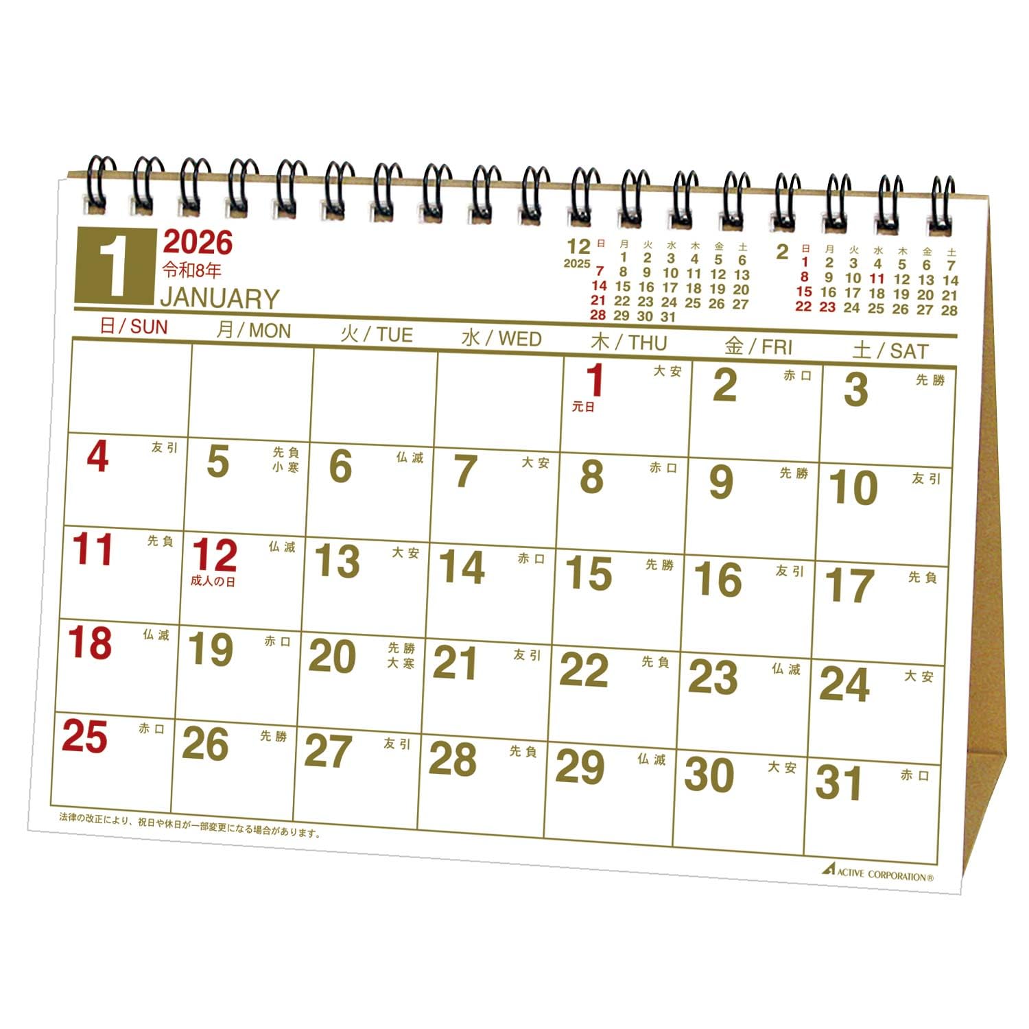 【送料無料】アクティブコーポレーション 2026 カレンダー 卓上 フリースペース 横 26ACL-561 2026年 1月始まり