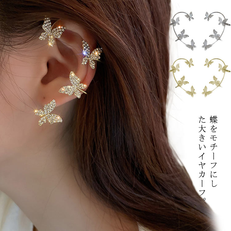 イヤーカフ 蝶々 ラインストーン キラキラ ノンホールピアス イヤークリップ 大きい レディース 大ぶり イヤーカフス 大人可愛い 片耳用 イヤカフ おしゃれ 痛くない トレンド 韓国 ゴールド シルバー ウェアリング 送料無料
