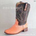 ブーツ レディース ウエスタンブーツ オーストリッチ柄 ミドル丈 エスニック風 スクエアトゥ スクエアヒール 合成皮革 フェイクレザー 防滑 保温 スタイルアップ ステッチデザイン コットン裏地 秋冬 イエロー ブラック ブラウン カジュアル 普段使い