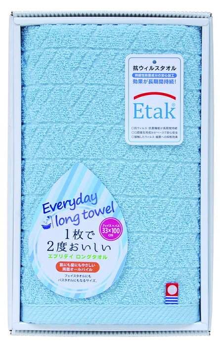 【直送品】今治抗ウイルスタオル TCC1505302 ブルー/グレー/ホワイト ロングフェイスタオル 日本製 綿100% 2022 ライフ タオルギフト【ヘルシ価格】日用品雑貨 生活雑貨 タオル セット ギフト 贈り物