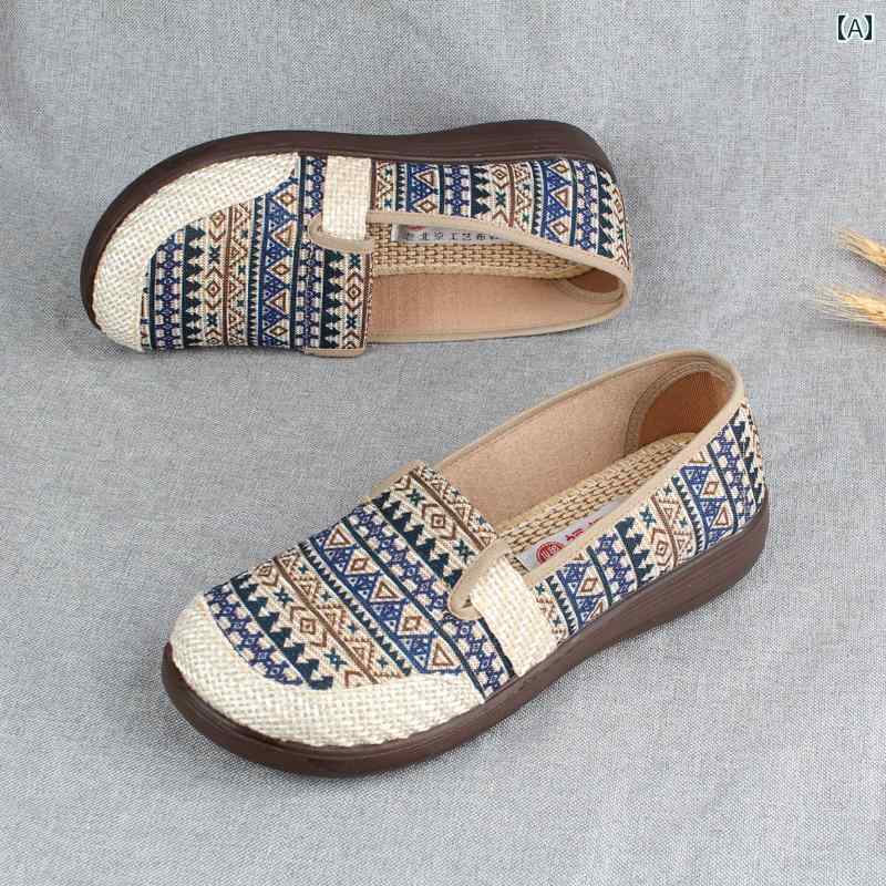 マザー シューズ カジュアル 女性用 千 層 布 靴 民族 風の 古風 女性 春秋 シングル シューズ 通気性 軽量 弾性 トップ 底 ウォーキング