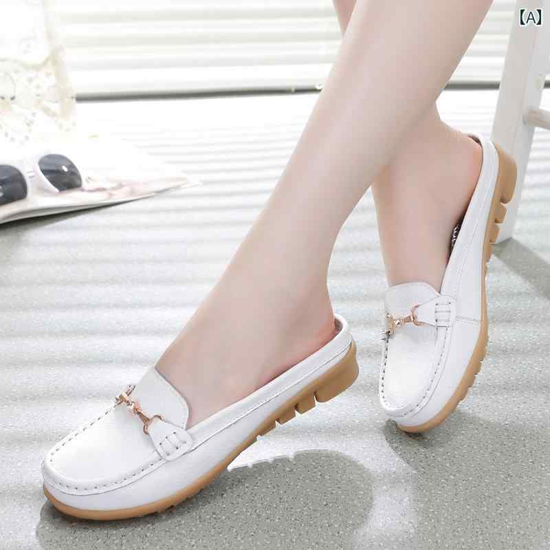 レディース ワークシューズ 本 革 モカシン、 女性用 ハーフ スリッパ、 怠け者の 靴、 オフィス サンダル、 フラットソール、 ステッチ入り、 滑り止め、 妊婦用 靴