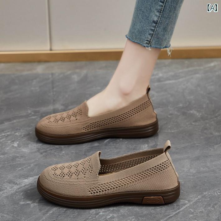 レディース ワークシューズ 夏の 女性の 靴 中空 メッシュ 古い 北京 布 靴 女性の 通 気性の 中高年 母親の ワン ステップ 滑り止め メッシュ 靴 高齢者向け