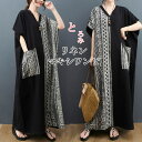 ワンピース 春 夏 きれいめ 半袖 tシャツワンピース エスニック Vネック ドッキング 切り替え ポケット ボリューム袖 ドルマンスリーブ ドロップショルダ とろみ 幾何柄 パフスリーブ マキシ ロング 体型カバー 着痩せ ゆったり ビッグシルエット ロングワンピース