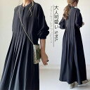 【短納期】シャツワンピース ワンピース 黒 レディース 秋 ロングワンピース マキシ丈 無地 切り替え プリーツ ロングワンピ 長袖 黒ワンピース 体型カバー 大きいサイズ ゆったり 大きいサイズ ドッキング ワイドプリーツ ボタン隠し フレア 秋