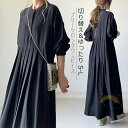 《限定特価:15%OFFで3128円》シャツワンピース プリーツ 長袖 秋物 ワンピース レディース きれいめ ロングワンピース 切り替え ワンピース ロング マキシ丈 膝下 長袖ワンピース 春 秋 ワンピ ドッキング ゆったり 切り替えワンピース 無地 着回し フォーマル