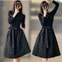 レディース きれいめ 大人 上品 ワンピース 長袖 ドッキングワンピース 切り替えワンピース ハイウエスト リボン オフィス パーティードレス 春 秋 冬 3 aライン カジュアル レトロ