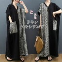 ワンピース 春 夏 きれいめ 半袖 tシャツワンピース エスニック Vネック ドッキング 切り替え ポケット ボリューム袖 ドルマンスリーブ ドロップショルダ とろみ 幾何柄 パフスリーブ マキシ ロング 体型カバー 着痩せ ゆったり ビッグシ