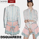 【定価192,500円(税込)】DSQUARED2 ディースクエアード 遊びココロ溢れるドッキングデザインでヌケ感も抜群!大人のラグジュアリーカジュアルを演出するフラワー柄 レース付きミニワンピース ギャザー ラッフル リボン シャツ S75CV0500 ライトブルー レディース 伊製 la1