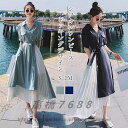 カット 合繊 ドッキング ノースリ ワンピース ロング レディース カジュアル dt-214-567-2356
