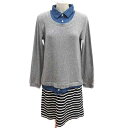 【中古】キューティーブロンド Cutie Blonde シャツワンピース ひざ丈 ドッキング ニット フェイクレイヤード ボーダー 長袖 M グレー 黒 ブラック 白 ホワイト /YK レディース 【ベクトル 古着】 250702