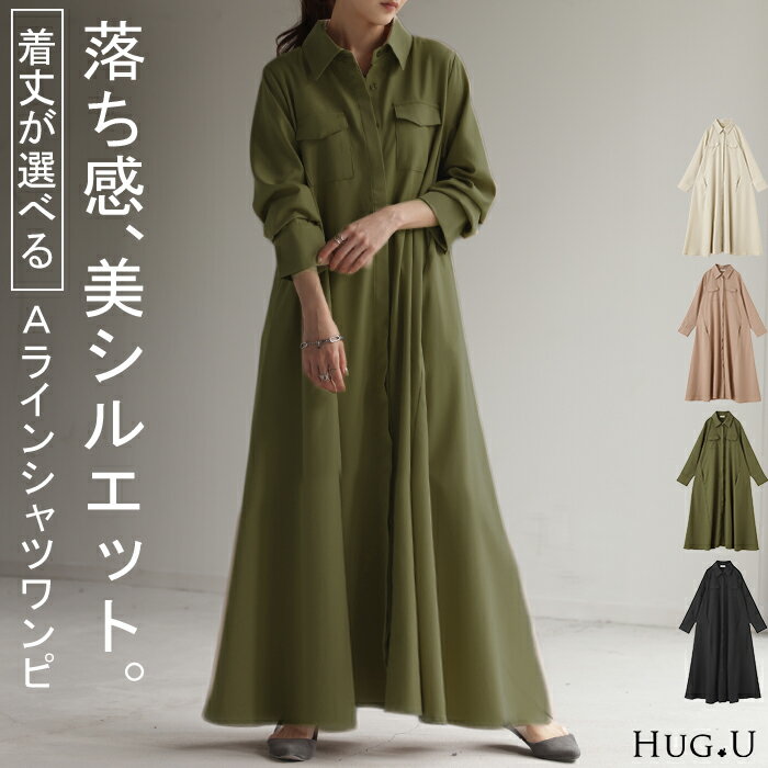 ワンピース シャツ 体型カバー シャツワンピース レディース シャツワンピ ロングシャツ ロング 長袖 ワンピ マキシ 大きいサイズ 無地 ブラウス ライトアウター 羽織 オーバーサイズ ゆったり オフィス カーキ 黒 ブラック 重ね着 春 冬 HUG.U