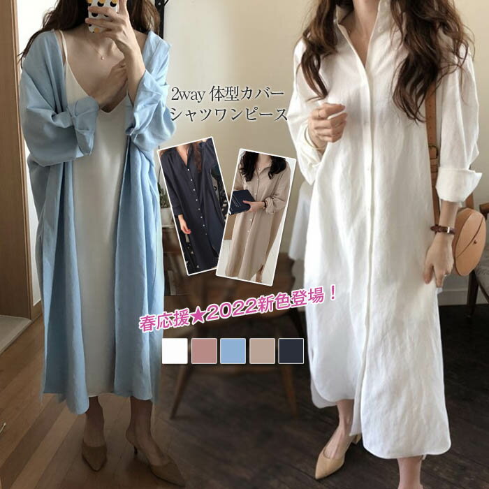シャツワンピース ワンピース ロングシャツ レディース 春 長袖 きれいめ 羽織り ロングワンピース ロングシャツワンピース ロング ロングワンピ マキシ マキシワンピース 大きいサイズ 体型カバー Aライン 春 夏 おしゃれ