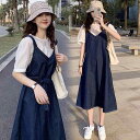 デニム ワンピース レディース サマー ドレス レディースファッション ゆったり ミドル 丈 サスペンダー デニムスカート ロング スカート 春夏 スーツ 夏 薄手