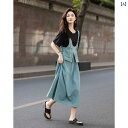レディース シャツ カジュアル ベスト スカート クマ 女の子 森 和風 プリーツ レース 無地 ゆったり リネン ドレス カバー 0650708