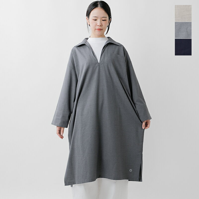 メーカー希望小売価格はメーカー商品タグに基づいて掲載しています 商品カテゴリー【グレー】【ベージュ】【ネイビー】ORCIVAL(オーチバル・オーシバル)ストレッチブロードスキッパーシャツワンピースor-g0113twr ORCIVAL(オーチバル) 1930年、フランス・リヨンでアンリ・ロベール氏がフランス中部にある小さな村の名前を使ってマリンTシャツのORCIVALブランドをスタート。1970?80年代にはフランス海軍でこのマリンTシャツが制服として採用されていたという 由緒あるブランドとして有名になりました。ORCIVALのマリンTシャツの原型は元々 ラッセル編みという生地で作られたもので現在、この生地を織れるマシンはフランスでも数台しかなく編むのにも時間がかかり、大量に生産されない状況です。それだけにORCIVALのマリンTシャツが 独特なものとして価値があるとも言えます。白地にロイヤルブルーのストライプが原型で現在はいろいろなカラーや素材のバリエーションが楽しめます。 ORCIVAL 一覧はこちら レイヤードして楽しむ、スキッパーシャツワンピース ORCIVAL(オーチバル・オーシバル)より、ストレッチブロード スキッパー シャツ ワンピースのご紹介です。 深めのVネックがデコルテラインをすっきりと見せ、女性らしい印象を演出するスキッパーシャツワンピース。ストレッチの効いたブロード生地は落ち感が美しく、上品な雰囲気を引き立てます。裾にはスリットを入れ、歩くたびに抜け感が生まれ、足さばきも快適です。さらりとした風合いと程よい落ち感が魅力。デイリーのカジュアルスタイルにはもちろん、インナーにカットソーを重ねれば季節を問わず活躍し、きれいめなコーディネートにも馴染む、大人のための一枚です。 着こなし広がるVネック 大きく開いたVネックで首元をすっきりと見せるデザイン。ニットやタートルネックの上からレイヤードすれば、季節感のあるスタイリングに。インナー次第で印象が変わり、幅広いコーディネートを楽しめます。 コーディネート トップス / パンツ / シューズ / ゆったりと余裕を持たせた裾に、サイドスリットがさりげないアクセントをプラス。左裾にはブランドロゴを配し、控えめながらも印象的なポイントに仕上げました。 ドロップショルダーの肩ラインとゆったりとした袖が、女性らしい柔らかさとリラックス感を演出。上品で洗練されたシルエットに仕上げました。 しっとりとしたドレープ感の美しい後ろ姿。ゆったりとした身幅で体のラインを拾わないため、体型を気にせず着用できます。 ●左胸には胸ポケットを配置しカジュアルなアクセントに。 ●袖はゆったりとしたシルエットで、幅広の折り返しが袖口に程よいカッチリ感をプラス。ロールアップすればすっきりとした抜け感のある着こなしに。 上質な平織素材の魅力 程よい落ち感のある平織り生地を使用しており、さらりとした軽やかな風合いが特徴です。肌触りがやさしく、動きに合わせて自然に揺れるため、着心地の良さはもちろん、シルエットの美しさも引き立てます。季節を問わず快適に着用でき、カジュアルからきれいめまで幅広いスタイルに合わせやすい素材です。 → 同素材シリーズはこちらをクリック SIZE size(cm) 身幅 肩幅 着丈 アーム ホール 袖丈 袖口 1 71 63 106 55 45 17.5 → サイズガイドはこちら country: 中国製 fabric: ポリエステル60%、毛22%、レーヨン16%、ポリウレタン2% info: 裏地/なし、伸縮性/若干あり、透け感/なし laundry: お洗濯について: 生成・淡色系は、無蛍光洗剤を使用してください。濃色は単独で洗ってください。つけ置き洗い、濡れたままの放置はお避けください。 → 洗濯表示について