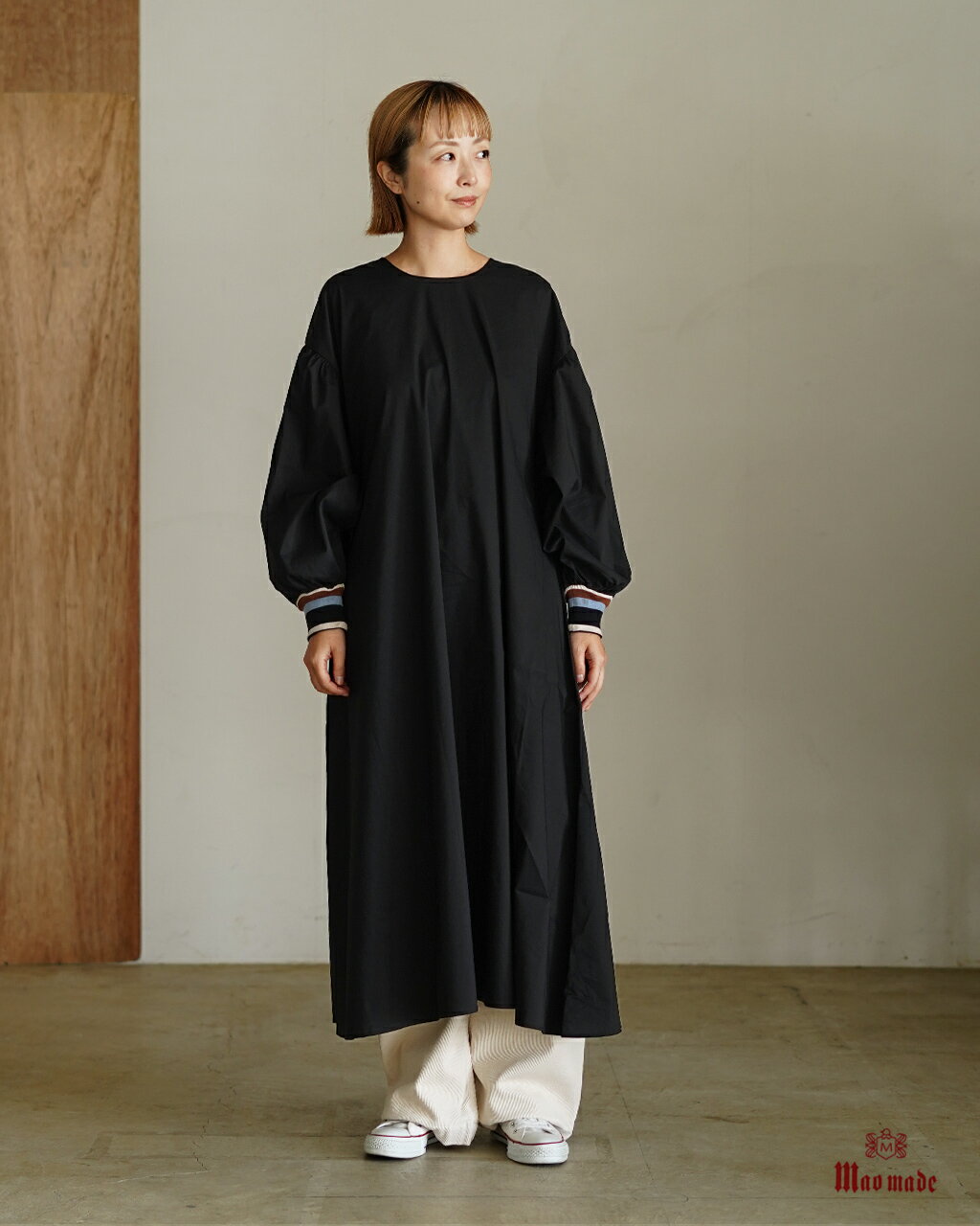 マオメイド mao made ふんわりスリーブ袖口ライン入りリブワンピース レディース 541302 ストレッチブロード 体型カバー リラックスフィット 洗濯機OK 0820 xp10