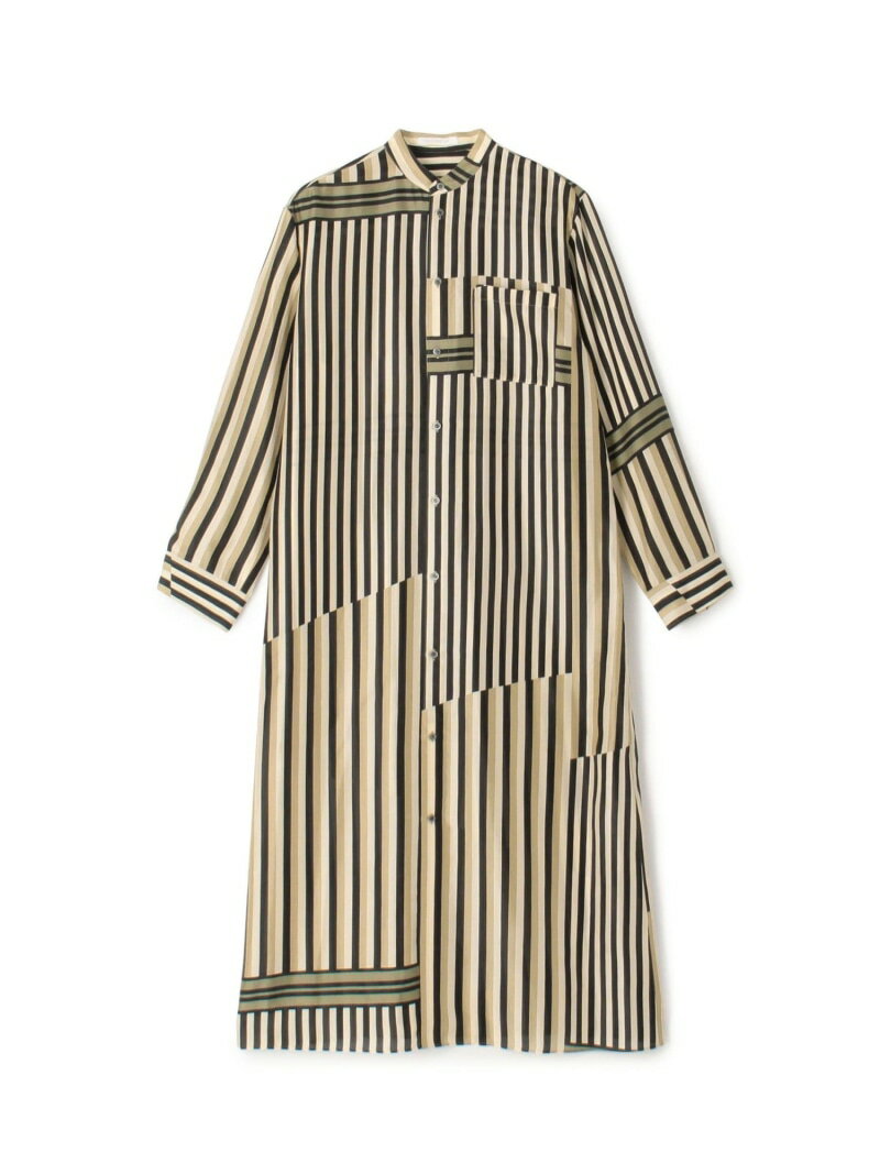 GALERIE VIE シルクハブタエストライププリント バンドカラーシャツワンピース トゥモローランド ワンピース・ドレス シャツワンピース ブラウン【送料無料】
