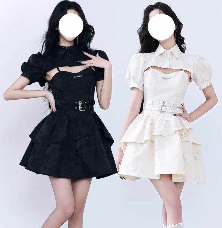 ゴシック ロリータ ワンピース ショート丈 ミドル丈 ジャンパー スカート 2点セット 半袖 ショート丈 肩掛け ボレロ ケープ Aライン パンク風 暗黒 ワンピース レディース ハロウィン コスプレ 衣装 舞台 ステージ衣装 ベルト セット服 Lolita ロリータ服 白 黒