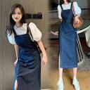 2A43 デニム ストラップ デニムスカート デニムサロペットスカート ジャンパースカート レディース ストラップスカート 春 夏 秋 スリット デニムワンピース ハイウエスト スリット 薄手 オシャレ カジュアル 韓国ファッション【送料無料】
