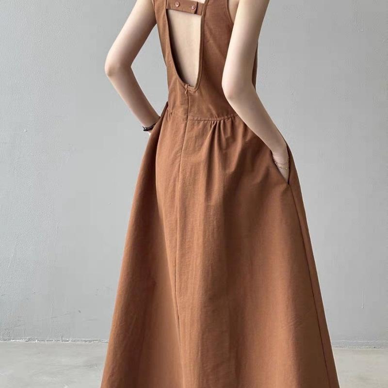 ・柄: 無地・スタイル: ストリート・スカート丈: ロング・スカート型: Aライン・ネックライン: ストラップ・袖丈: ノースリーブ・カラー: ベージュ、オレンジ・サイズ: S、M、L、XL・素材: ポリエステル