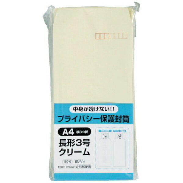 A4判三つ折り用の封筒です。淡い色彩で、気品のある豊富なカラーバリエーションが人気です。封筒の内側に施した特殊加工により内容物が透けないため、請求書、個人情報、重要書類などの取り扱いに最適です。 封筒本体サイズ:120×235mm(長形3号)。坪量:80g/。定形内郵便。裏面テープ無し。郵便枠印刷あり。貼り方:サイド貼。色:クリーム。紙質:プライバシー保護Hiソフトカラー。入数1000枚。 外装ケースはダンボールです。あらかじめご了承ください。この商品は個包装にはなっておりません。梱包開封後の返品はお受けできません。配達の時間指定はできません。