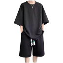 [Gebacades]メンズジャージ上下セット夏用半袖快適セットアップメンズ夏自宅用リラックスルームウェアスポーツウェアおしゃれカジュアルプレゼント夫兄ブラック3XL