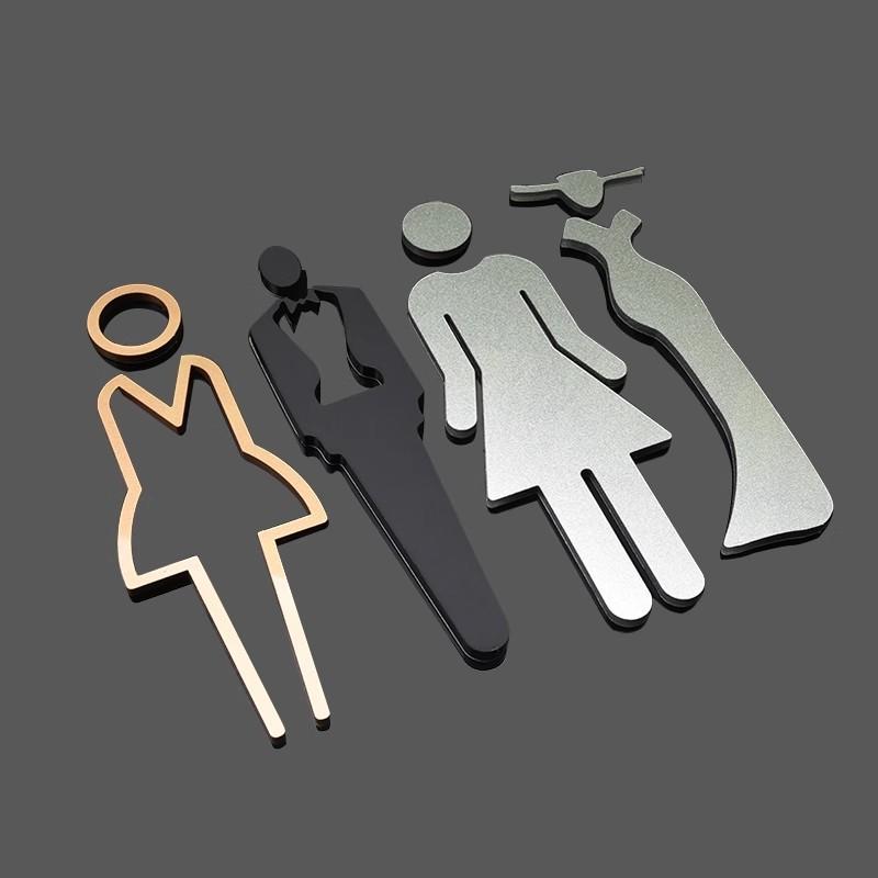 ・カテゴリ: サインプレート・用途: トイレ用・素材: アクリル・デザイン: 男女兼用、女性用、男性用・カラー展開: ブラック、シルバー、ゴールド・サイズ展開: 20x6cm、25x8cm、30x9cm、20x12cm、25x15cm、30x18cm