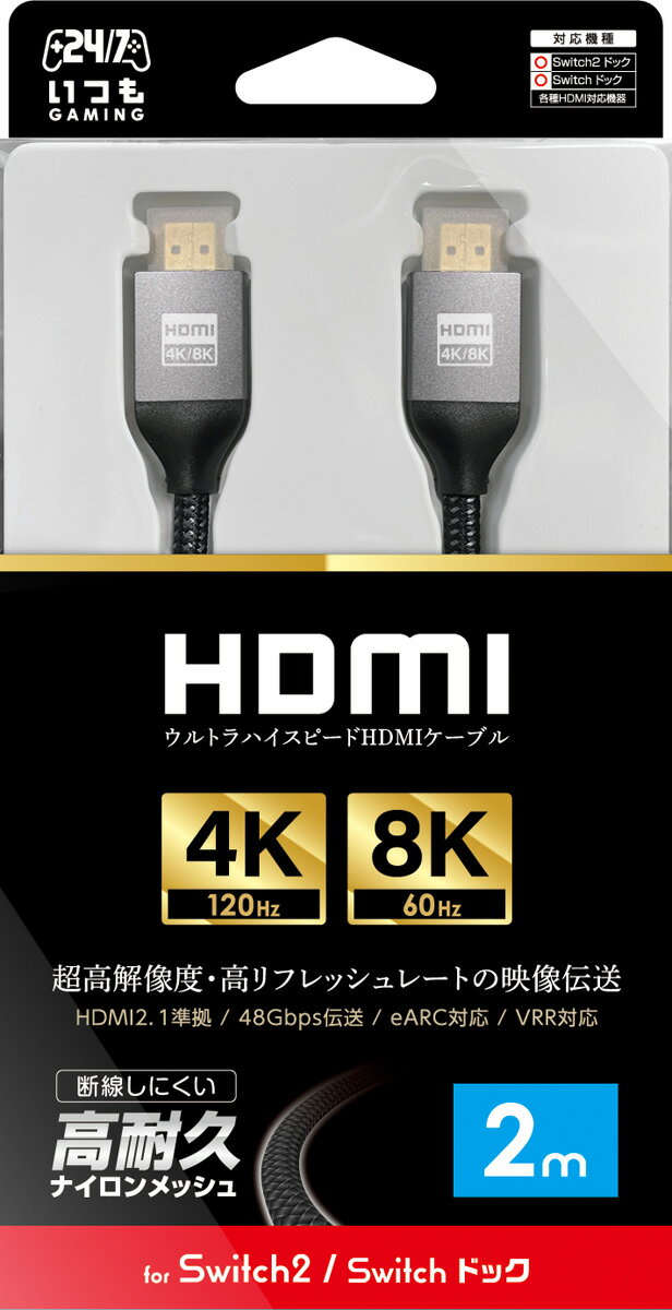 【返品種別B】□「返品種別」について詳しくはこちら□「おひとり様3点まで」2025年09月 発売※Nintendo Switch 2のTVモードでは最大4K/60fpsに限定されます。※VRR機能はNintendo Switch 2のTVモードでは非対応です。◇◆商品紹介◇◆超高解像度・高リフレッシュレートの映像伝送HDMI2.1準拠、48Gbps伝送、eARC対応、VRR対応(※)・Switch2の性能を最大限発揮するHDMIケーブル! ・しなやかで丈夫なナイロンメッシュを採用! ※VRR機能はNintendo Switch 2のTVモードでは非対応です。◆製品詳細◆対応機種 : Nintendo Switch 2、Nintendo Switch、他各種HDMI対応機器端子形状 : HDMIプラグ(タイプA)HDMI企画 : ウルトラハイスピードHDMIケーブル対応解像度 : 2K/240Hz(2560×1440)、4K/120Hz(3840×2160)、8K/60Hz(7680×4320)※伝送速度 : 48Gbpsケーブル長 : 約2m(コネクター含まず)ケーブル直径 : 約6mm※Nintendo Switch 2のTVモードでは最大4K/60fpsに限定されます。おもちゃ>TVゲーム>Nintendo Switch 2>周辺機器・アクセサリー